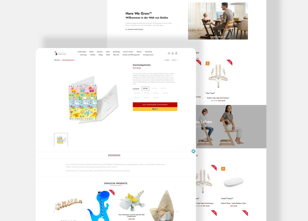 Für das Bebe Kinderparadies durften wir an einem zentralen Bestandteil des Online-Shops arbeiten. Als etablierter Shop mit vielen täglichen Besucherinnen und Besuchern lag der Fokus klar auf Stabilität, Performance und einer reibungslosen User Experience. Jede Anpassung musste sauber durchdacht und zuverlässig umgesetzt werden, da bereits kleine Fehler direkte Auswirkungen auf Bestellungen und Umsätze haben können.