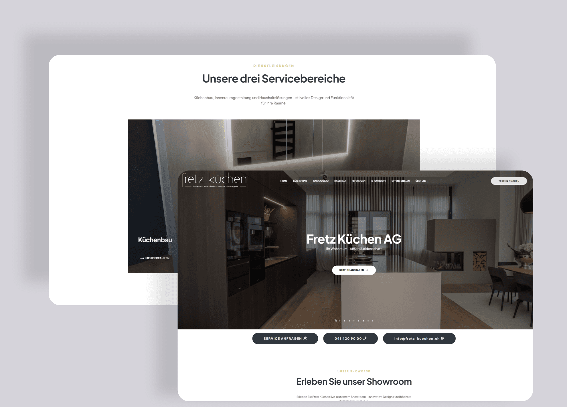 Für Fretz Küchen durften wir einen modernen Webauftritt entwickeln, der Design, Funktion und Markenwirkung vereint. Ziel war es, die Qualität der Küchen und die Werte des Unternehmens digital erlebbar zu machen.